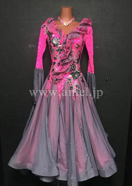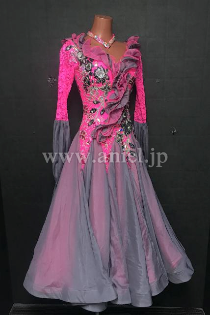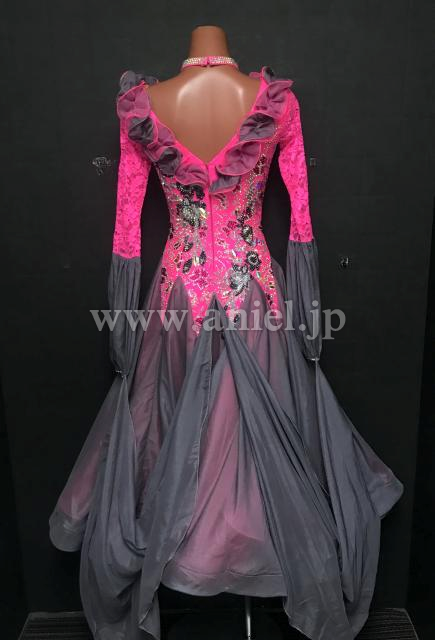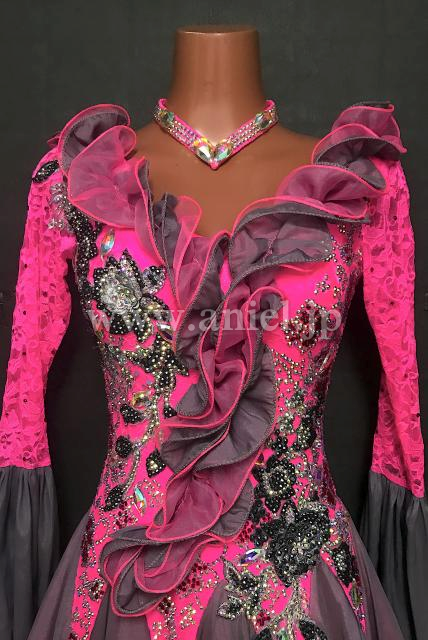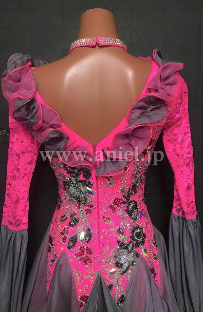 鮮やかなピンクとヘマタイトグレーの組み合わせがおしゃれなドレス。
