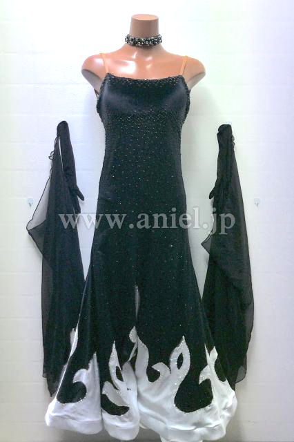 白の模様がスカートに施され、踊って広がった時に美しく見えるドレス。