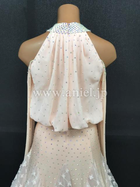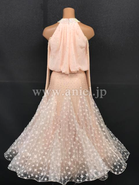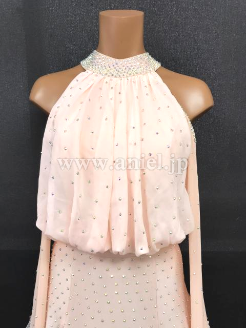淡いベージュピンクカラーの可愛らしい雰囲気のドレスです。