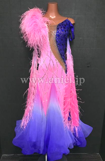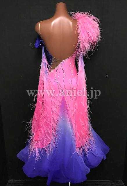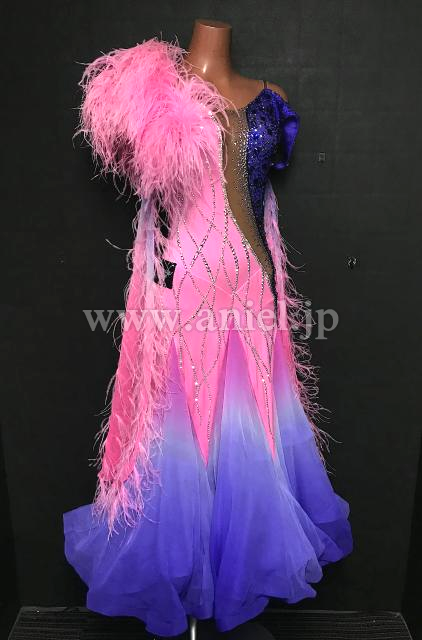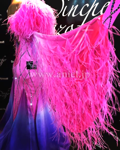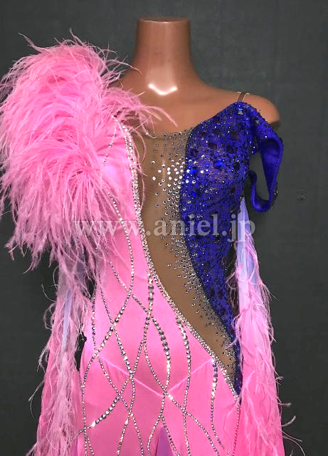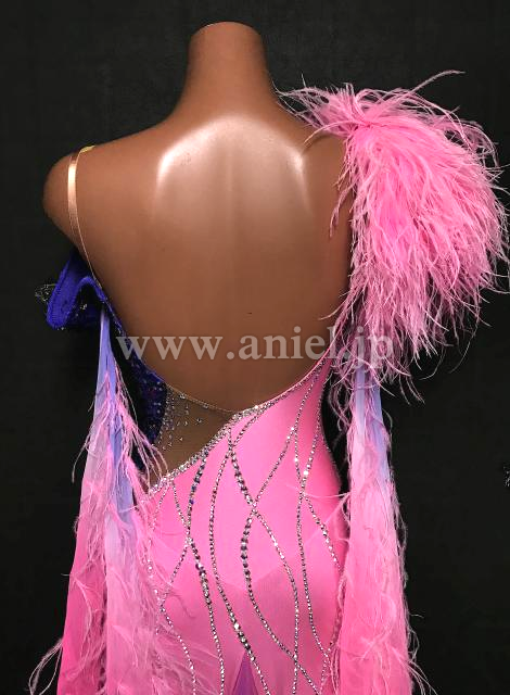 肩とフロートのピンクの羽根が華やかです。