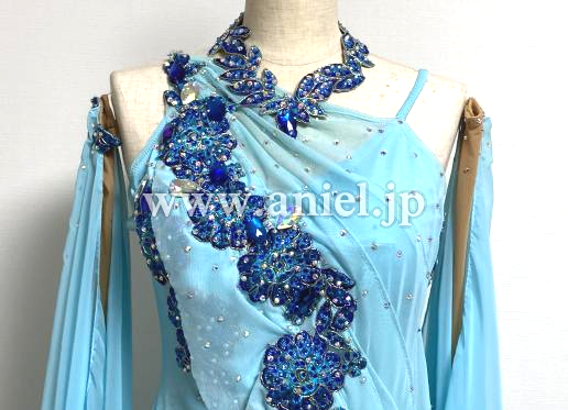 ドレス全体にモチーフ&石が貼ってあり輝きます。(プレシオサ&スワロ)