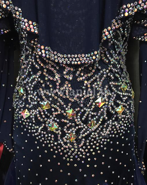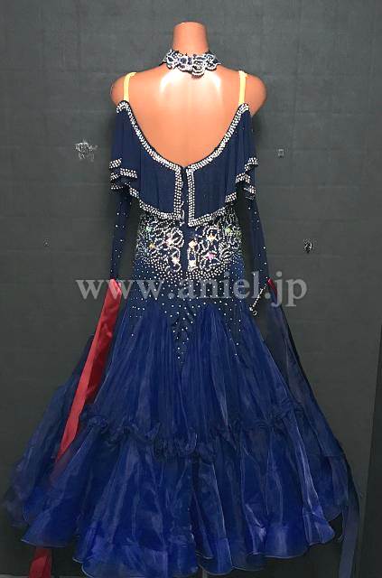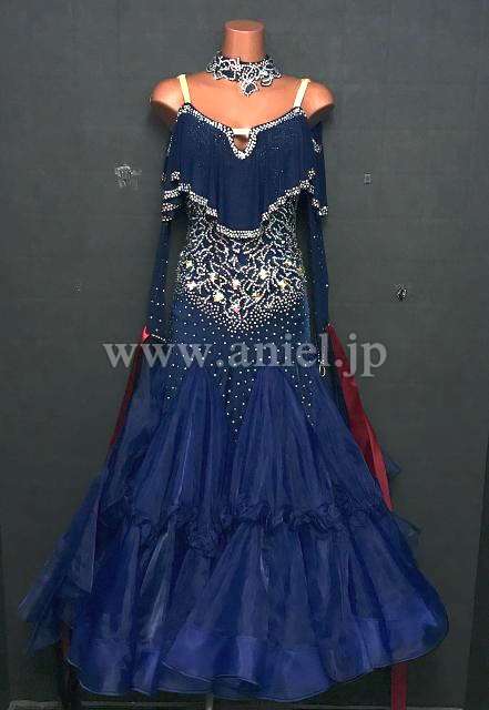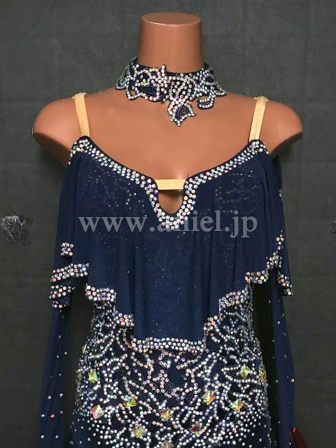 シックなネイビーカラーにオーロラストーンが煌びやかなドレス。