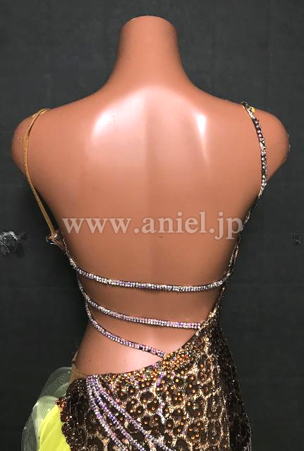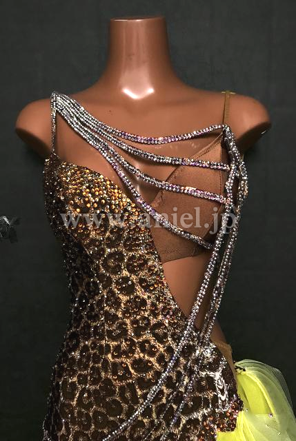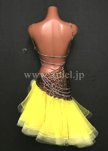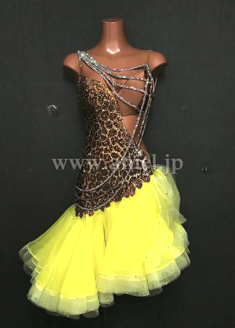 ヒョウ柄のボディに明るい黄色がラテンらしい1着。