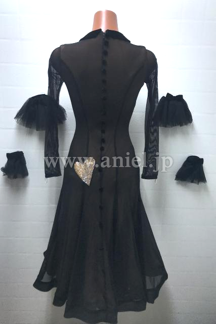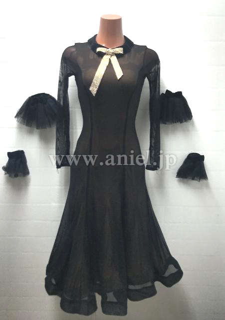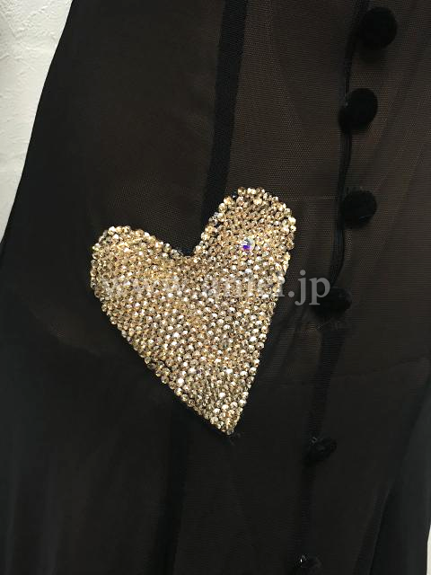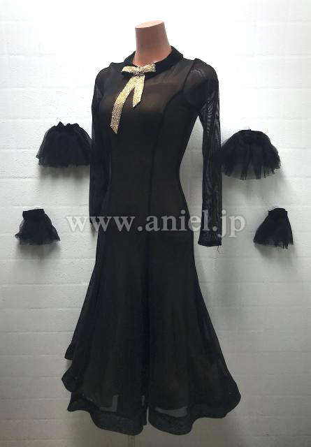 黒のシンプルなボディにゴールドストーンのリボンがポイントになっているキュートなドレスです。