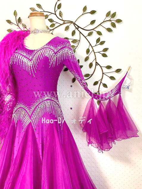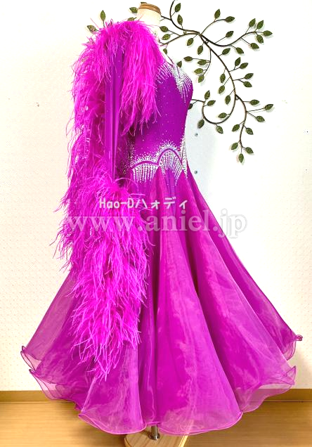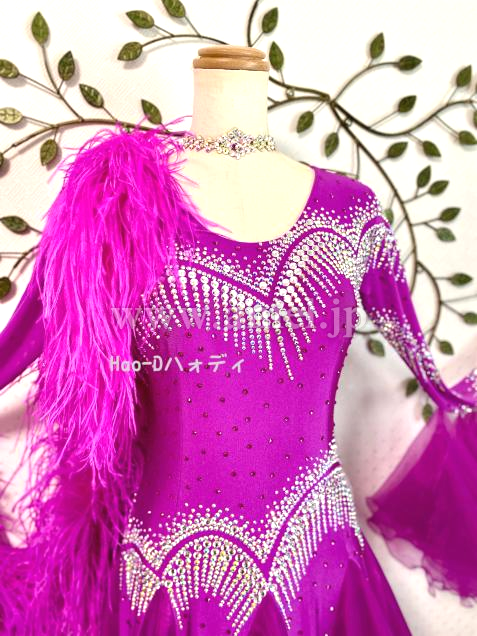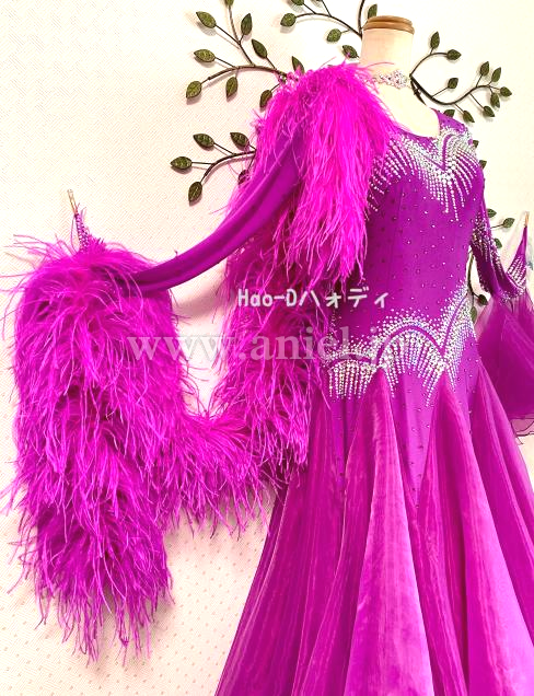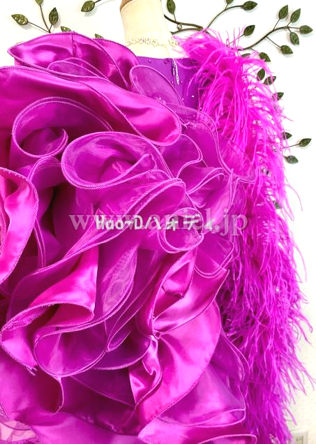 豪華ストーン装飾にボリューミーオーストリッチファー、フロアで大変よく目立つ素敵なドレス