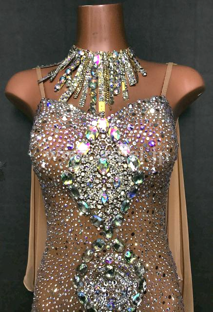 上品なベージュカラーにストーンがたっぷりでゴージャス。