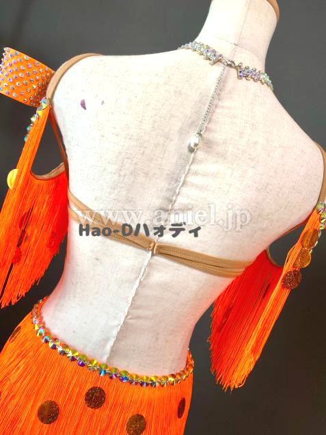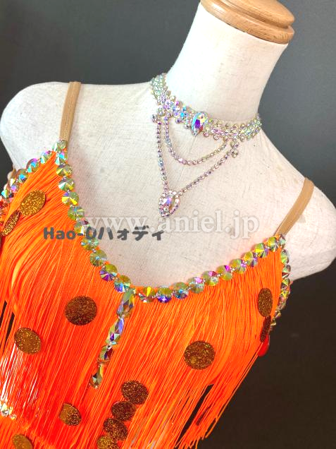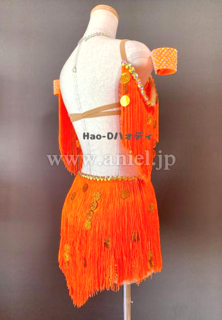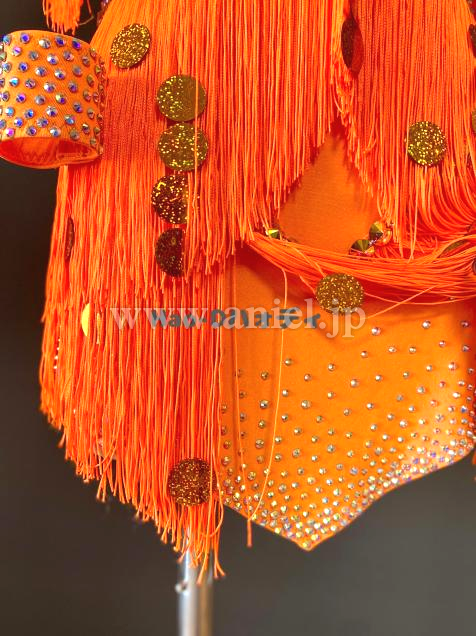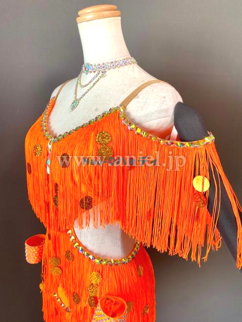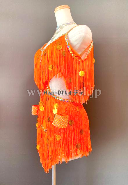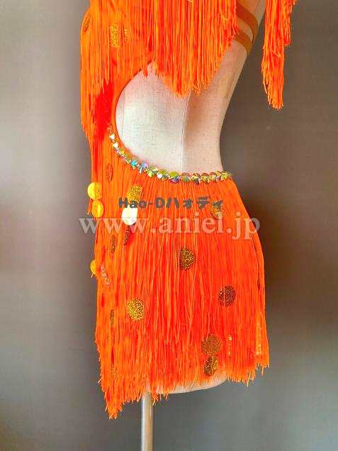 よく目立つ蛍光オレンジカラーのたっぷり踊ってくれるフリンジドレス