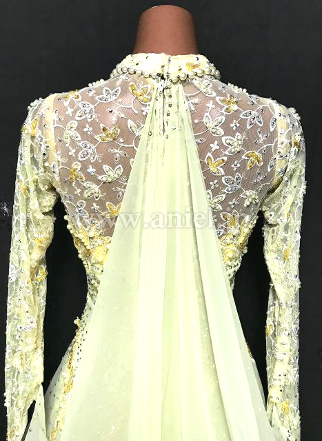 レースにはスパンコール、パールが装飾されています。