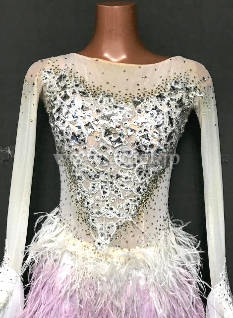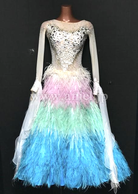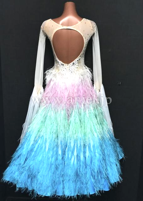 スカートは美しいグラデーションになった羽根がびっしりで非常に豪華。