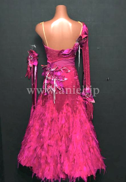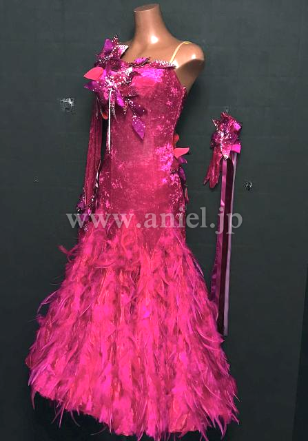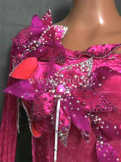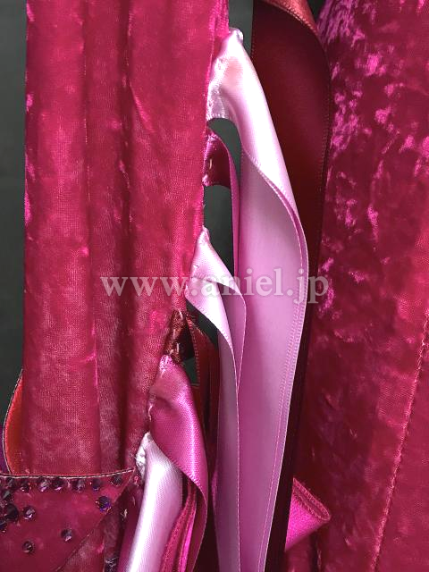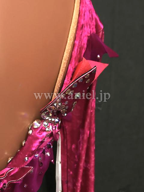 ベルベット生地の濃いピンクが目立ちます。