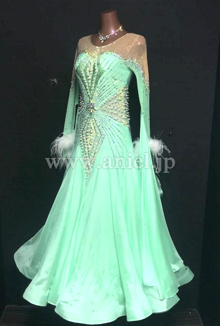 ペパーミントのカラーが美しいドレスです。
