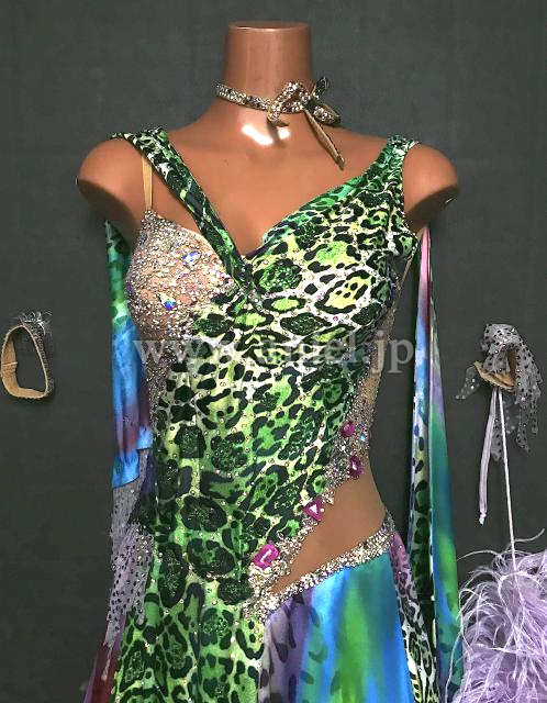 カラフルな豹柄がとても個性的なドレスです。