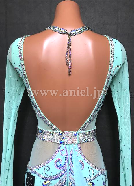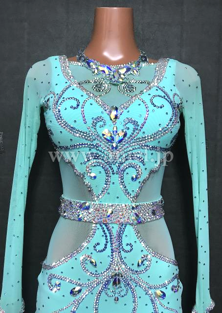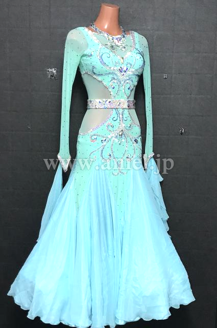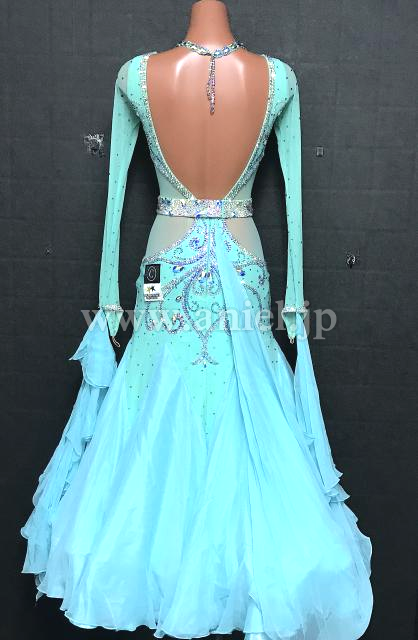 水色の美しいカラーが映えるドレスです。