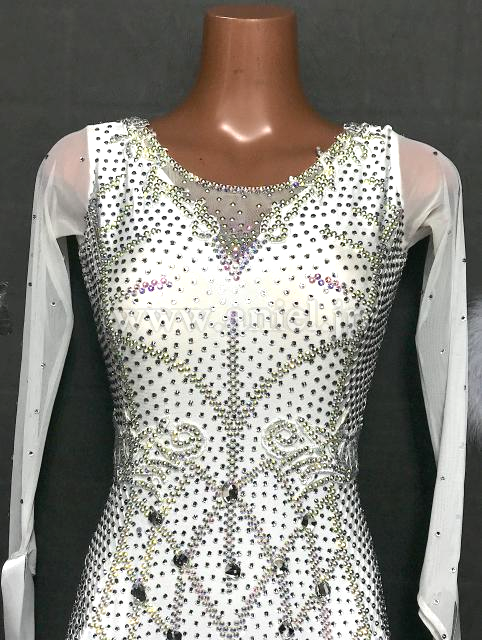 ホワイトのボディにストーンのラインが華やかなドレスです。