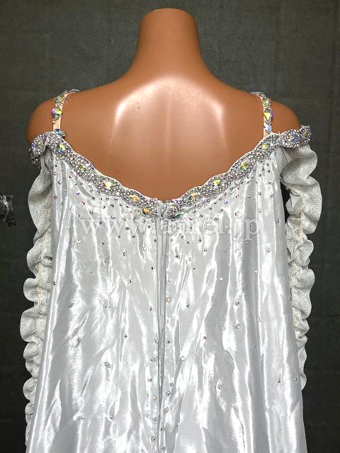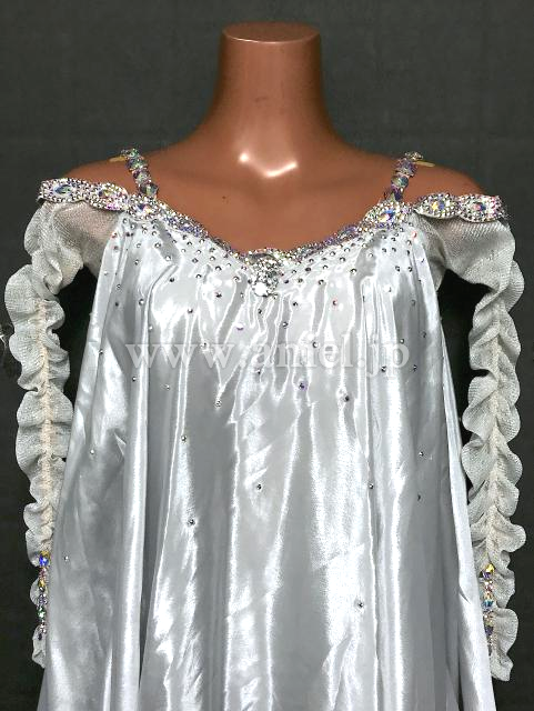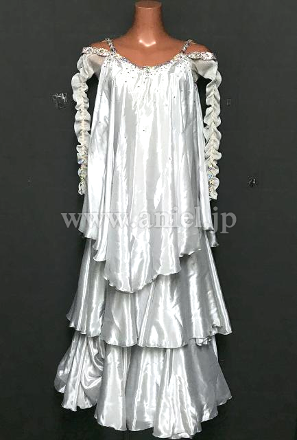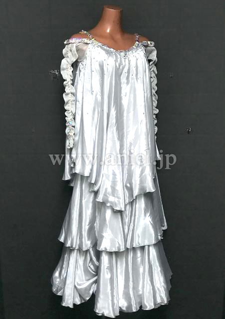 シルバーのドレープがティアードになっている広がるドレスです。