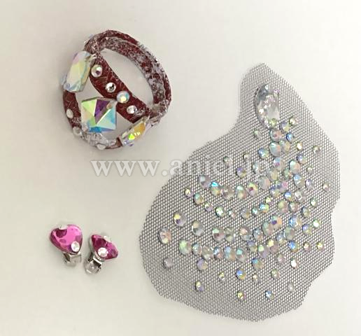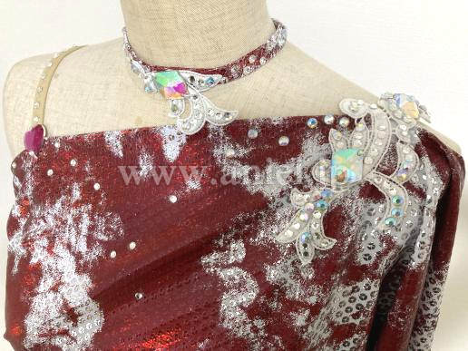 左肩&右ボディの白モチーフにシルバーストーンSS20(スワロフスキー)をメインに使用しつつアクセントには大きいオーロラストーンが輝きます。