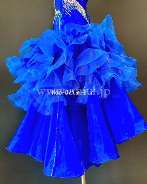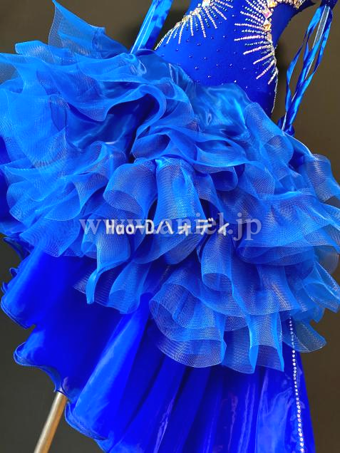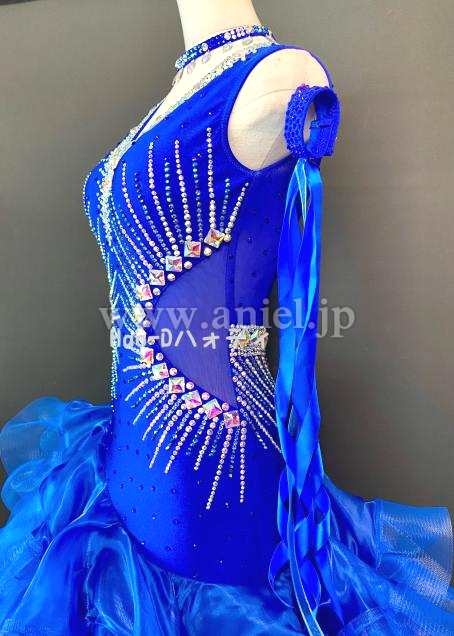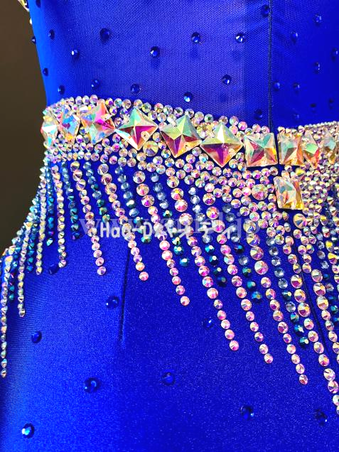 ロイヤルブルーにクリスタルオーロラのストーンを装飾したゴージャスなドレス