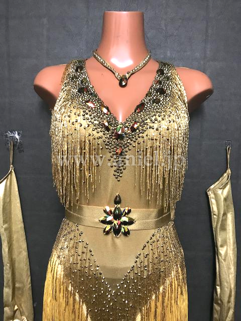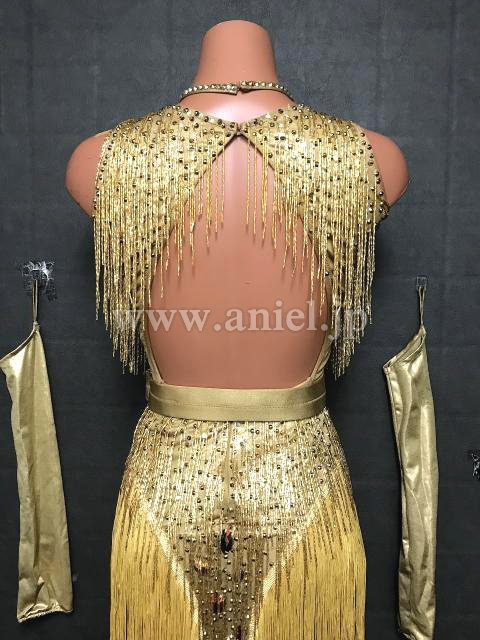 華やかなゴールドのドレス。