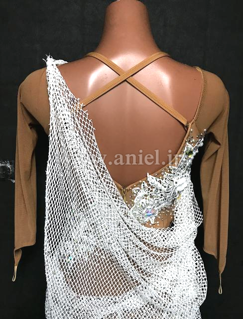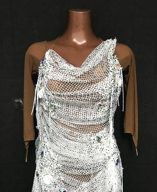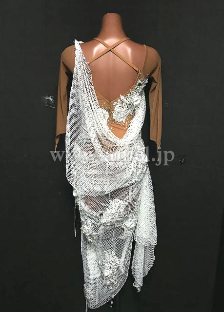 白のメッシュがドレープになっているドレスです。