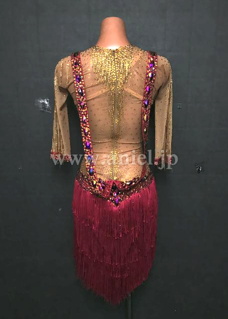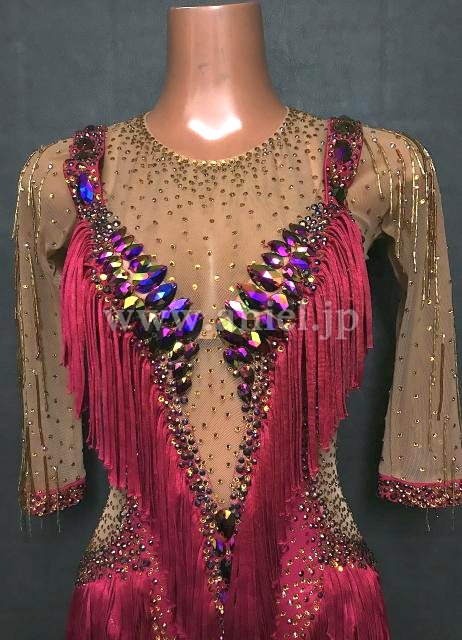 深いレッドのフリンジドレス。