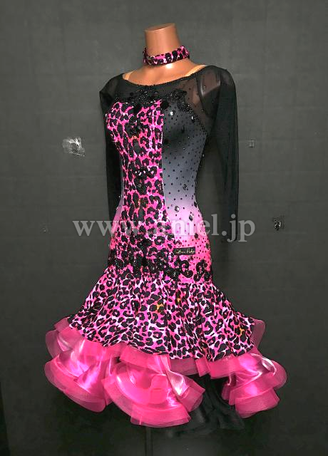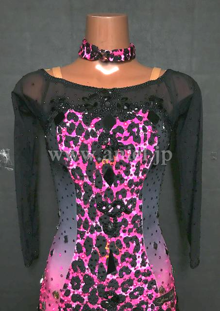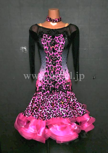 鮮やかなピンクの豹柄がインパクトのあるドレスです。