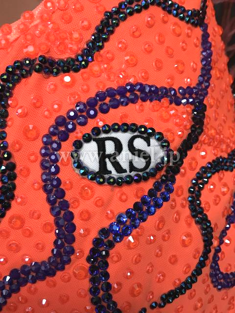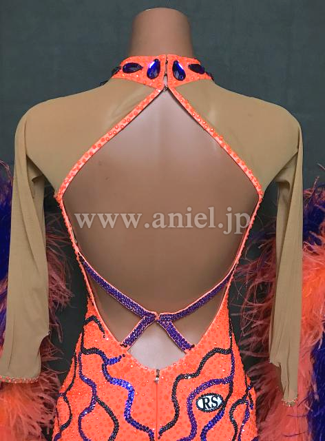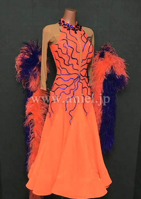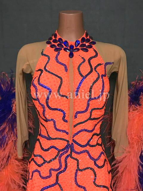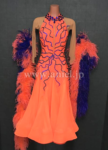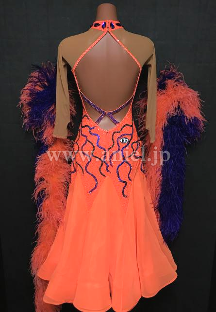 オレンジと紫のコントラストが目立つドレスです。