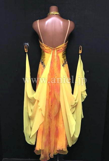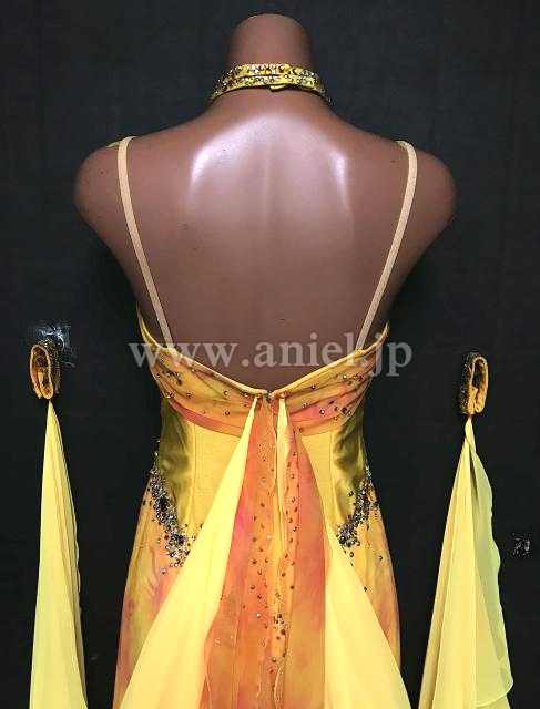 背中から左右にフロートが広がるドレスです。