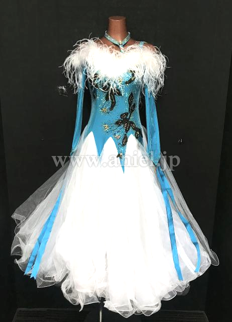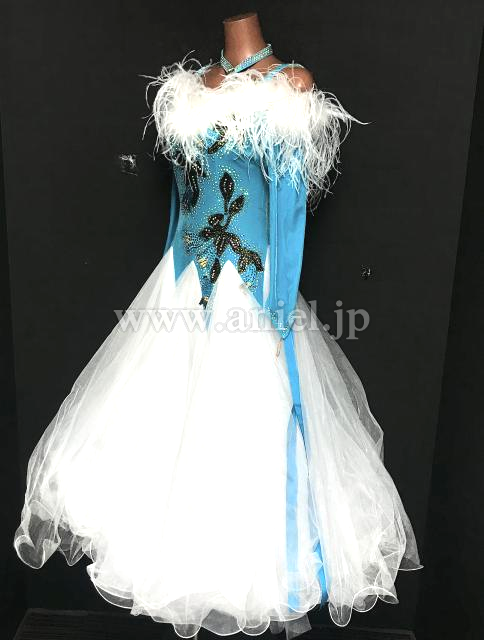 水色と白のオフショルダードレス
