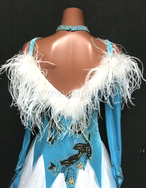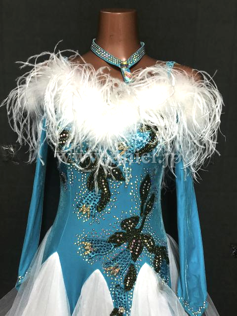 胸元に羽根が装飾されています