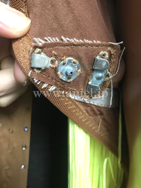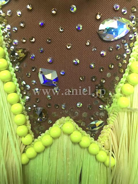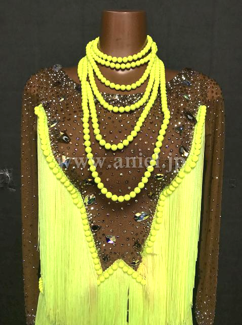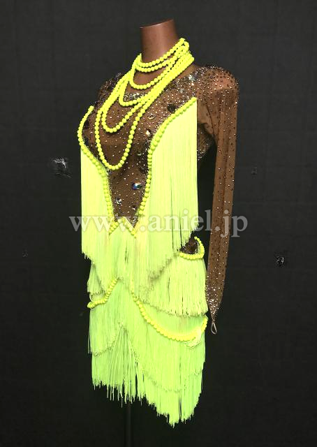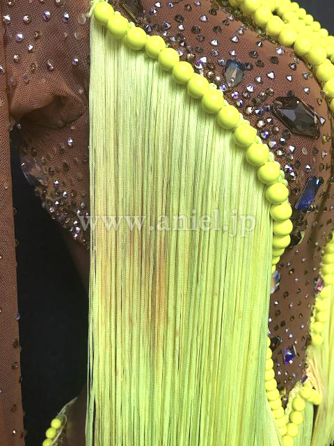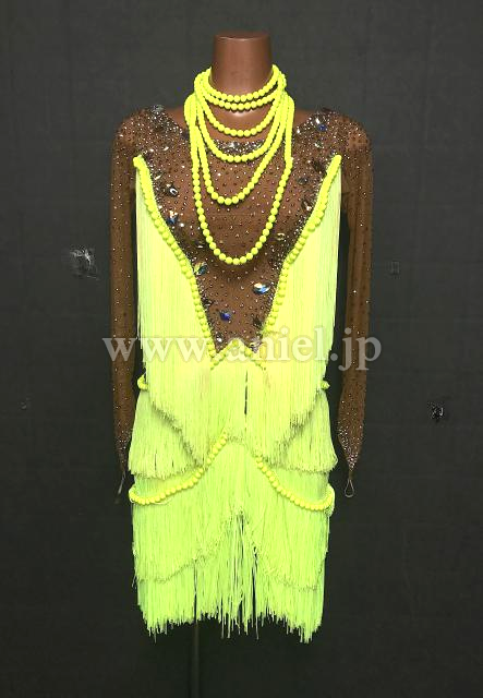 ベージュと蛍光黄色のドレス