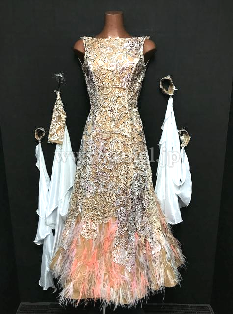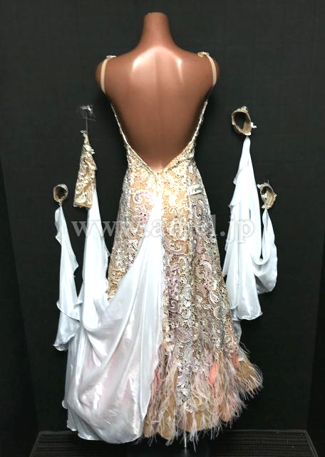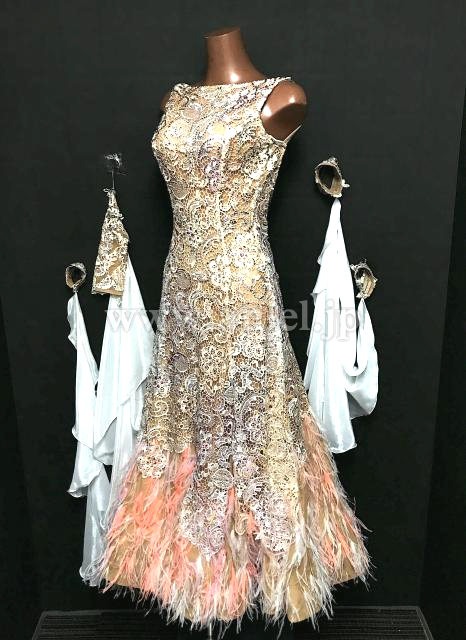 スカートの裾は羽根の装飾がされています