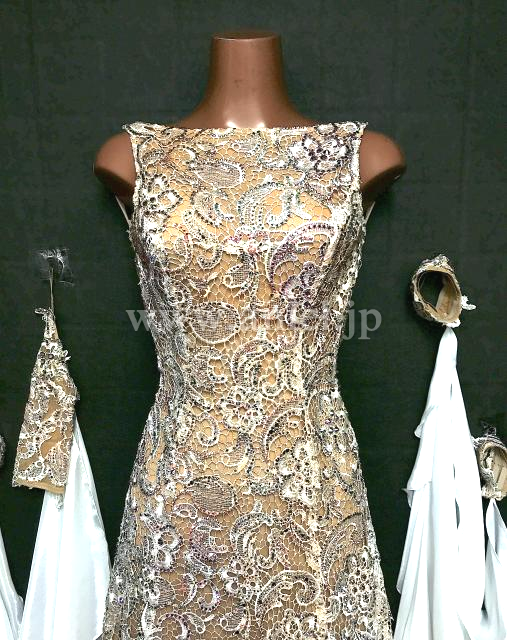 総レースにストーンの装飾がされた豪華なドレス