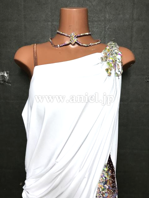 ベージュのレオタードに白の布を纏わせたルンバドレス