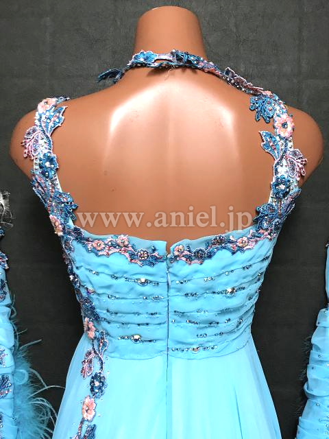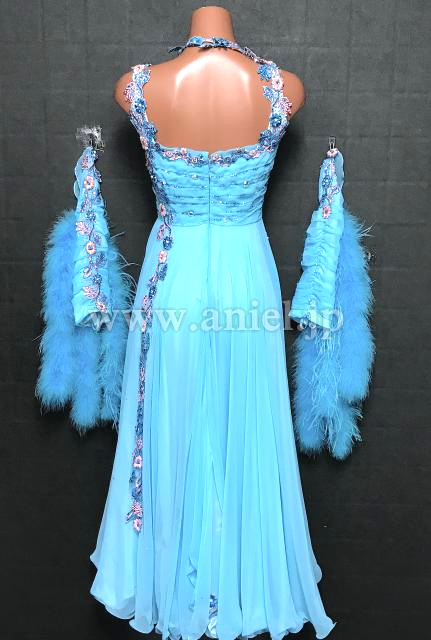 水色のハイウェスト切り替えドレス