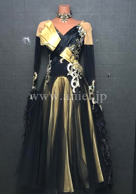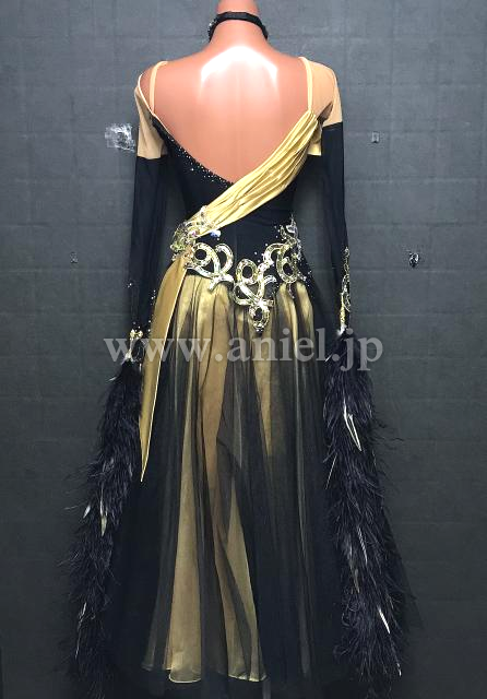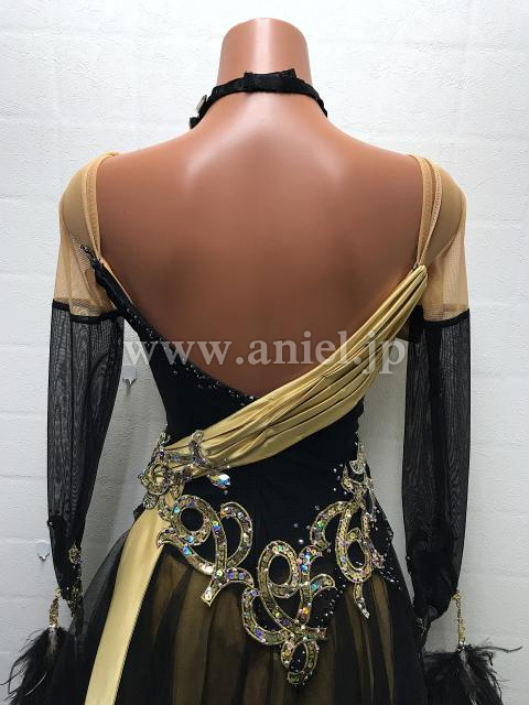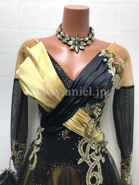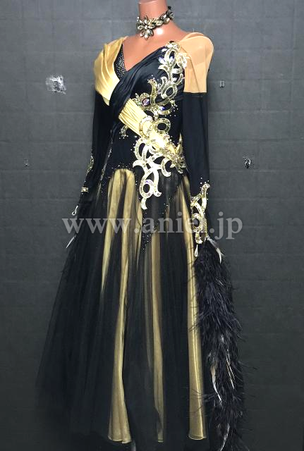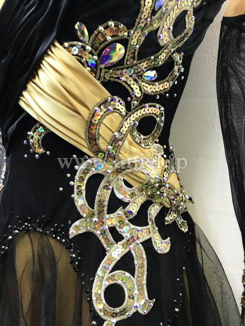 黒にゴールドの装飾が上品でエレガントなドレス。