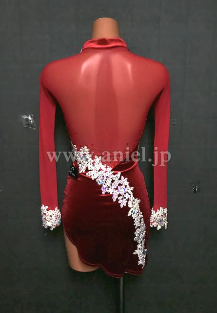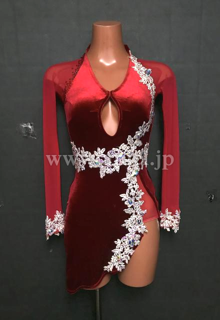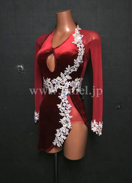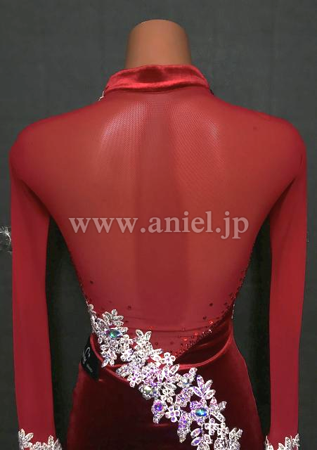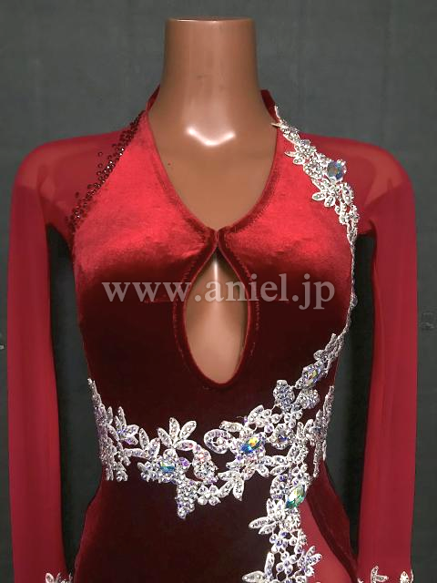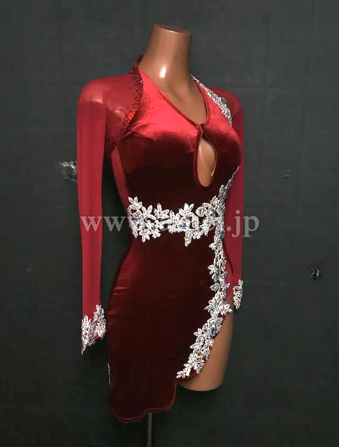 赤のベロア生地ロングスリーブドレス