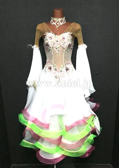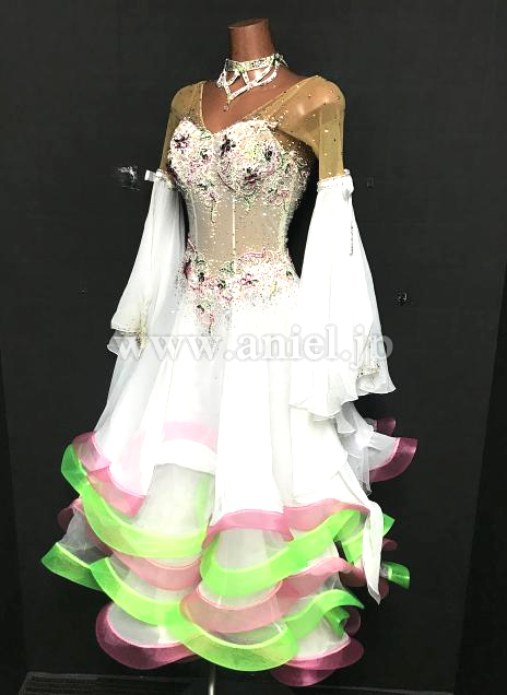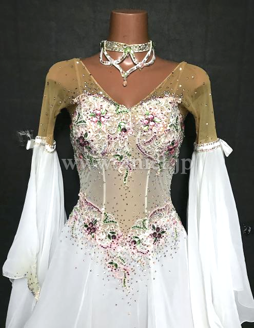 白にお花のモチーフが可愛らしいドレス