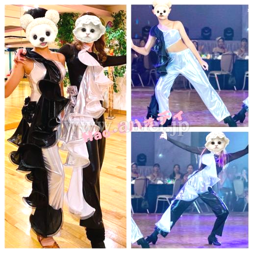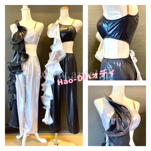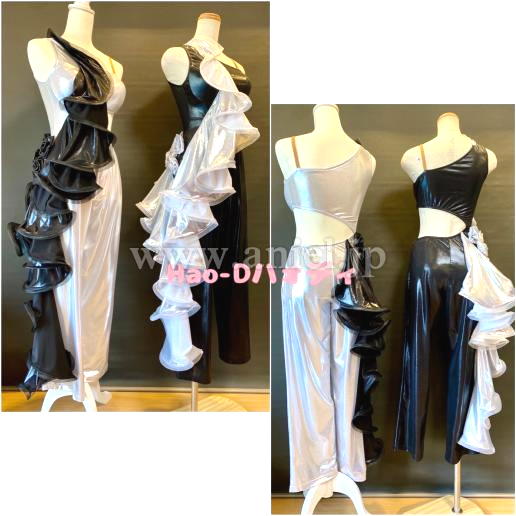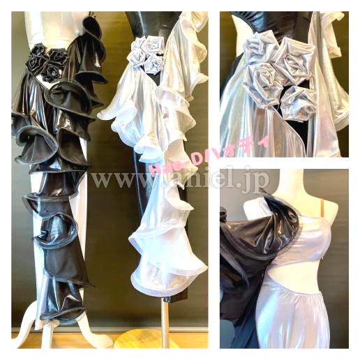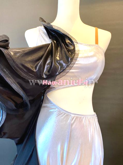 光沢ありメタリック生地のブラック&シルバーのコントラストでとてもユニークな動きを表現する