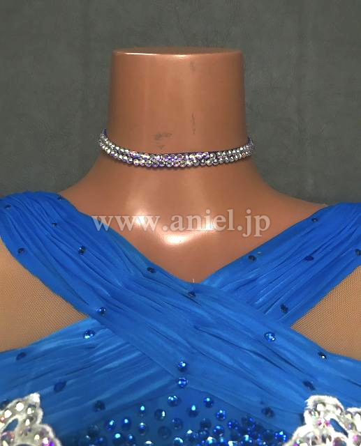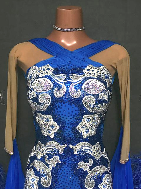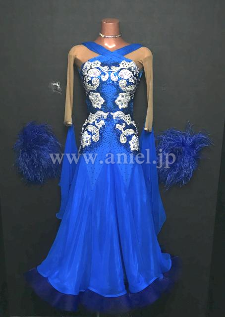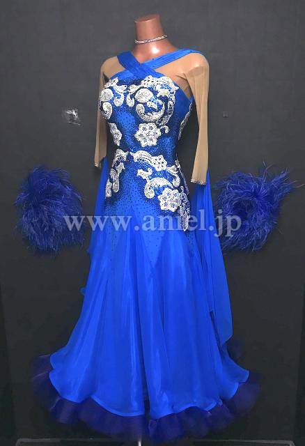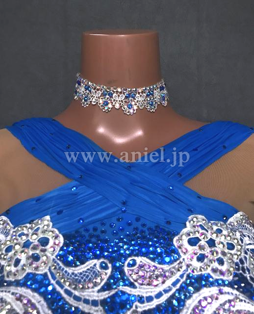 美しい青に白のモチーフが映えるドレスです。