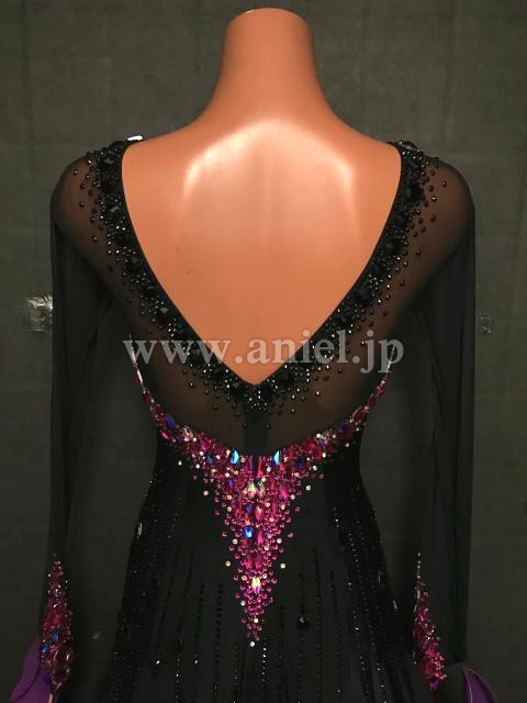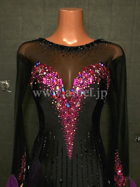 大粒のピンクのストーンが黒のボディに映えるドレスです。