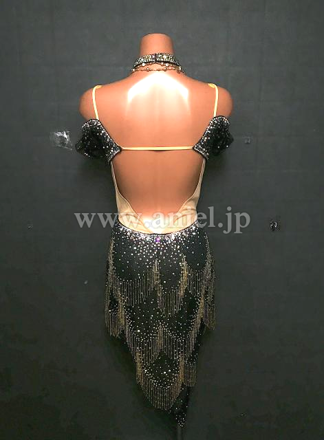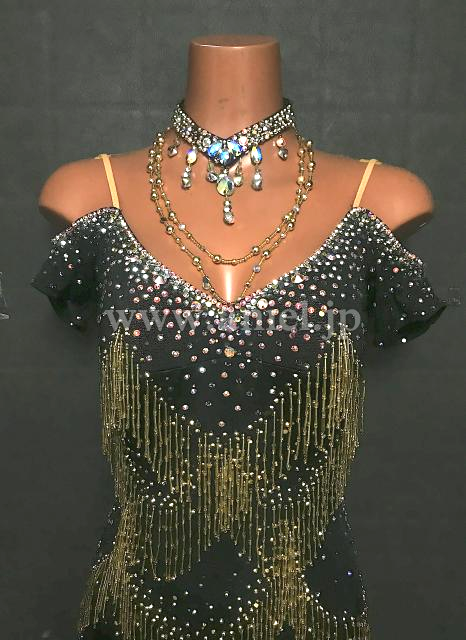 ゴールドのビーズフリンジがキラキラと動くドレスです。