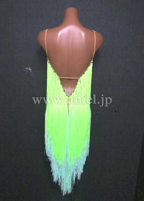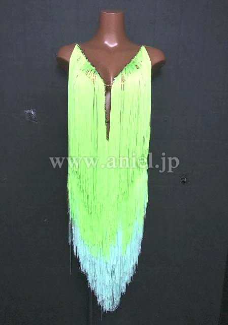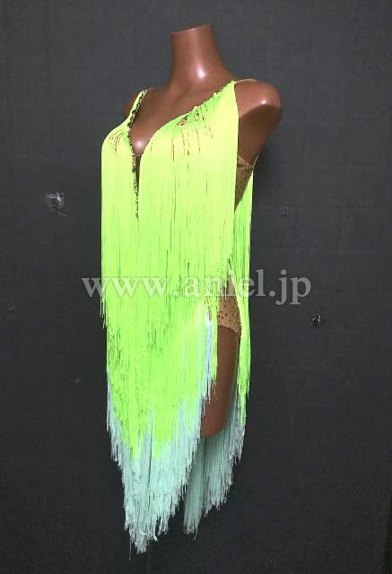 黄緑と水色のフリンジが可愛らしいドレスです。