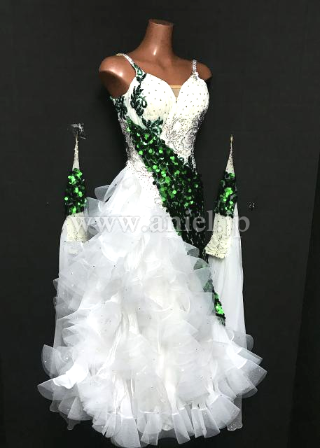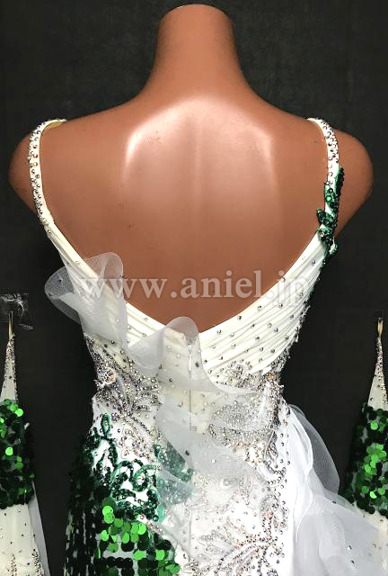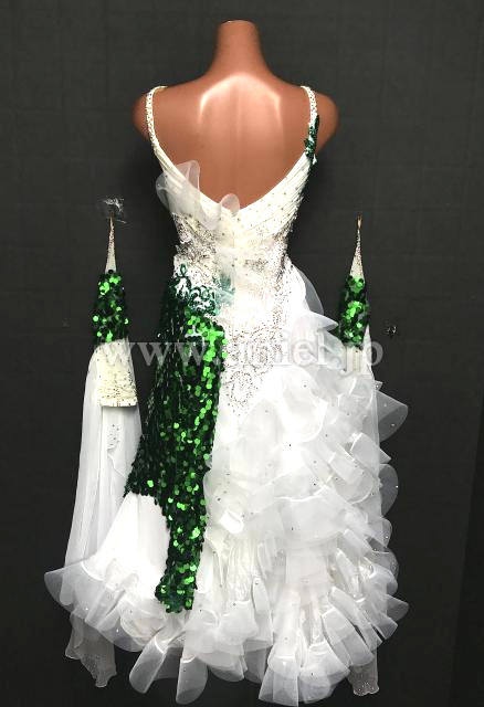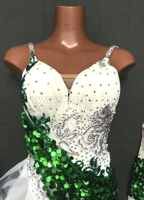 白に緑のスパンコール生地がアクセントになっています