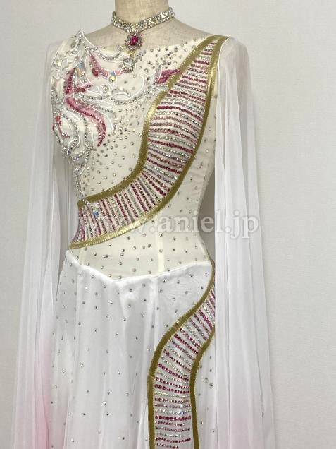 白からピンクのグラデーションが綺麗で、ドレス全体&腕輪に豪華なストーンが沢山輝きます。