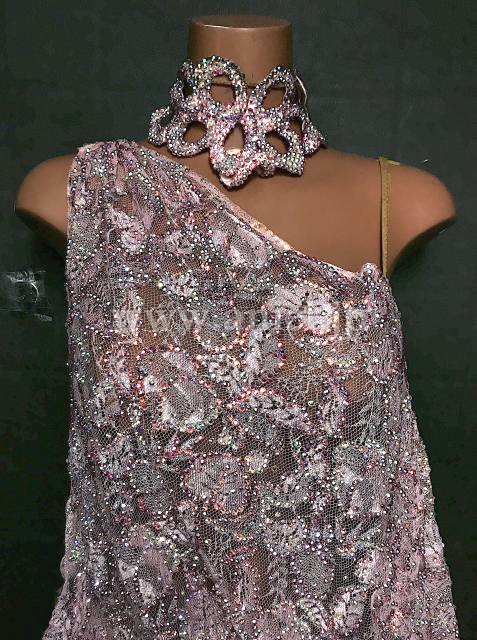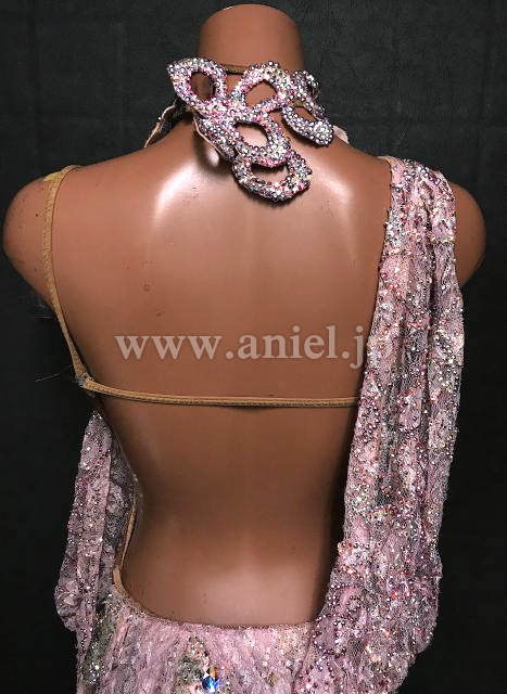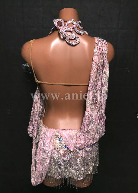ピンクのレース生地が可愛らしいミニ丈ドレス。