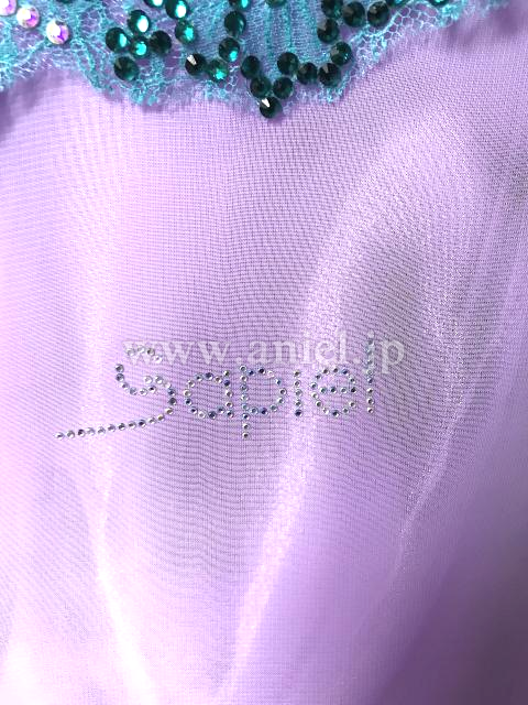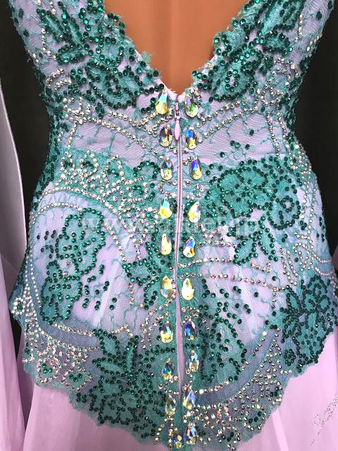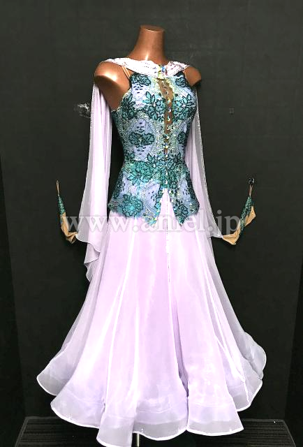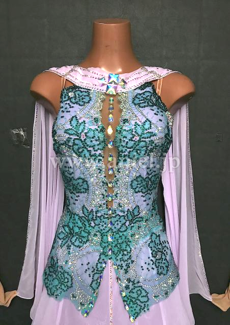 綺麗なラベンダー生地にボディ部分は素敵なグリーンのレースが