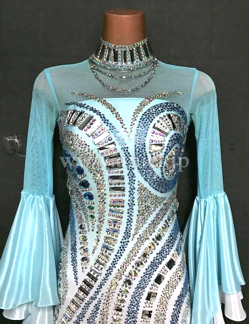 大量のストーンで作られたラインが非常に豪華なドレスです。