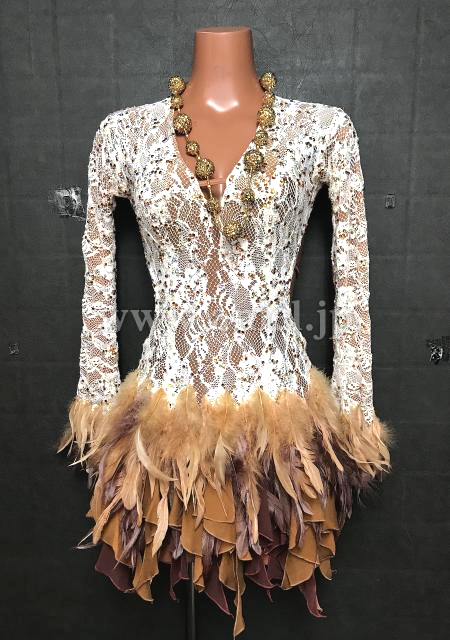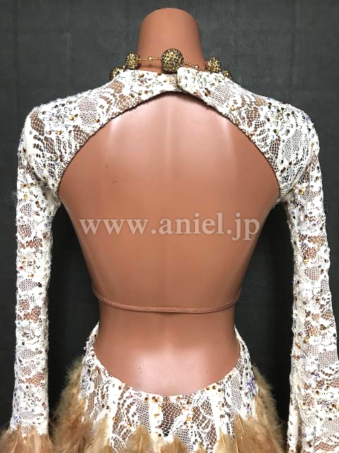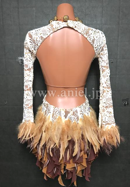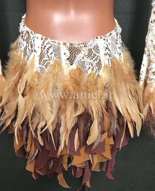 スカートと袖に羽根を使用し、ゴージャスなイメージになっています。