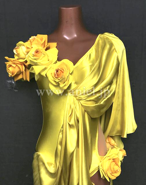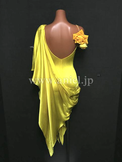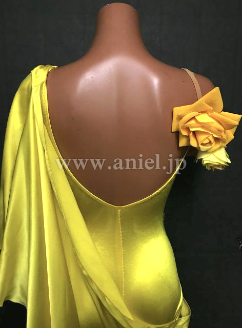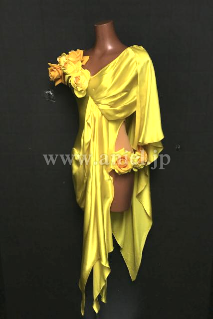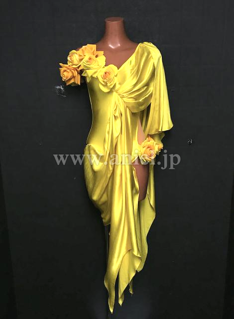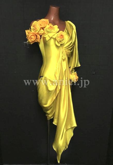ツヤっとしたサテン生地を使った、インパクトのあるルンバドレス。