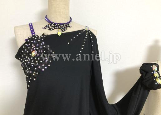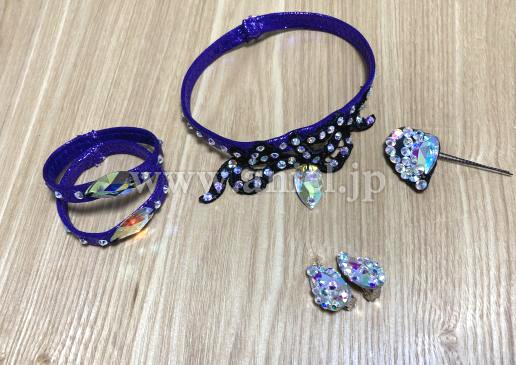黒モチーフにストーンSS20(スワロフスキー)をメインに使用しつつアクセントには大きいオーロラストーンが輝きます。